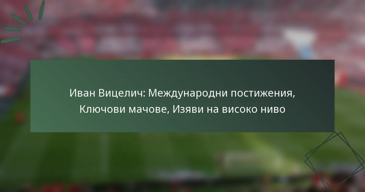 Иван Вицелич: Международни постижения, Ключови мачове, Изяви на високо ниво